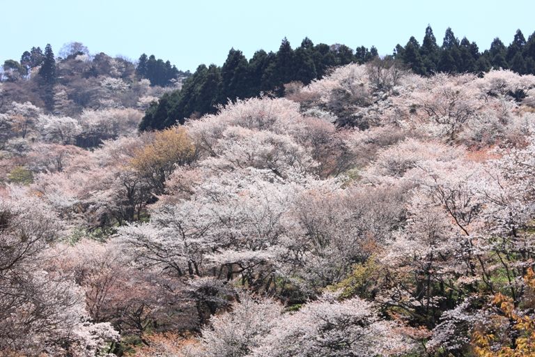 春の吉野山は下千本から徐々に桜が開花してゆき、奥千本まで吉野山全体を美しく、見事に彩ってゆきます。